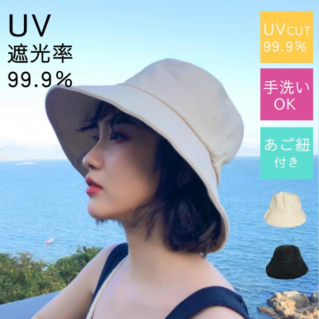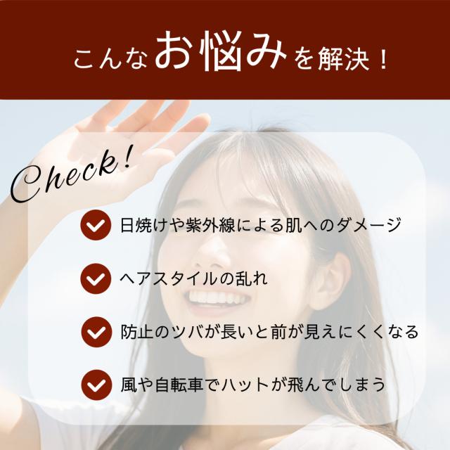 ・特徴:つば広 UVカット99.9%以上 遮光率100% あご紐付き(サイズ調整可) 小顔効果