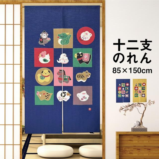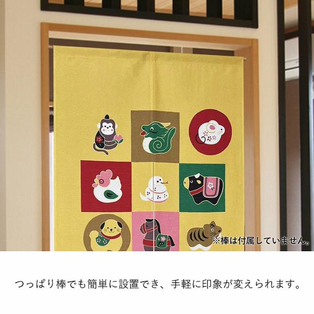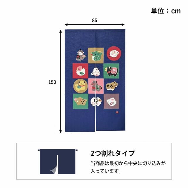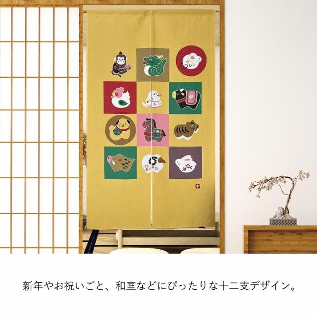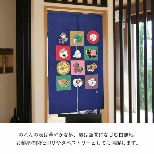 のれん おしゃれ 暖簾 かわいい 「 十二支のれん 」 85×150cm 十二支 和柄 居酒屋 和風 和モダン カーテン 仕切り 間仕切り玄関 階段 脱衣所 お風呂 廊下 かわいい