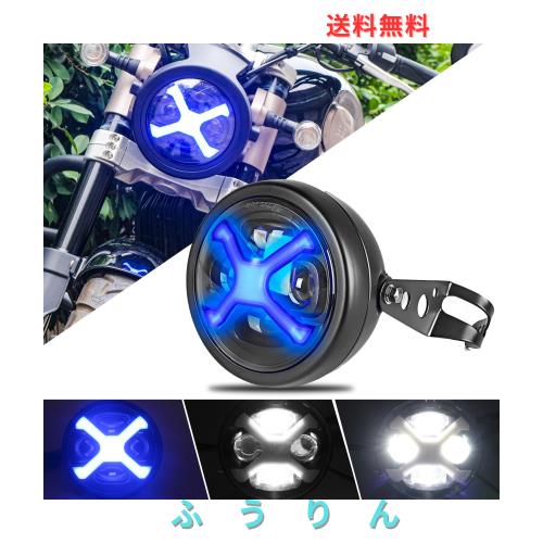 Motikvansled バイク ヘッドライト5.75インチ60W X-タイプ オートバイ ヘッドライト汎用ハウジング&ブラケット付き 丸型 プロジェクター
