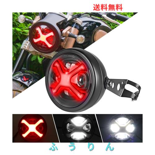 【取り付けやすい】:簡単なインストール、5.75インチのモーターサイクルヘッドライトはH4プラグでできており、ランプとランプハウジングが取り付けられており、分解する必要がなく、端子を直接接続して電源を入れると発光します、ヘッドライト ホワイトの「X」型の デイタイムランニングランプ 付き、ハウジング付き、ほとんどの32〜40mmのモーターサイクルのショックアブソーバーに適合します(フォークチューブが40mmより大きい場合は、マウントブラケットのサイズについてお問い合わせください).