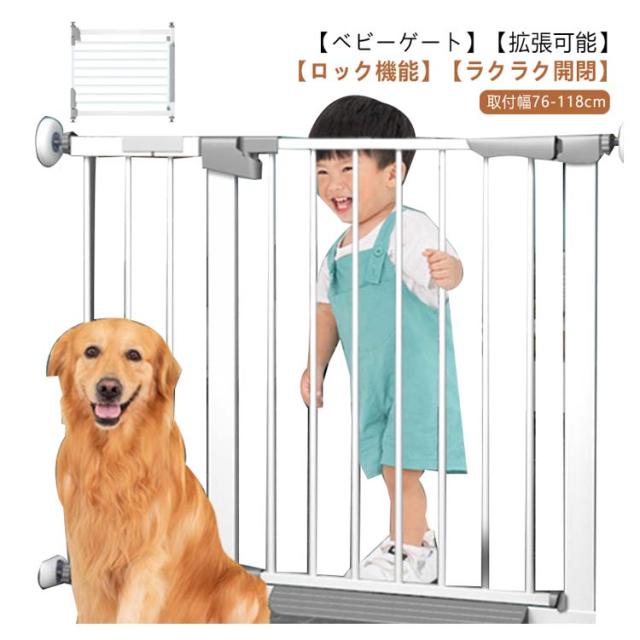 ベビーゲート 取付幅76-118cm 取付簡単 突っ張りタイプ セーフティゲート ベビーガード ペットゲート スイングドア 赤ちゃん キッチン ペット用 フェンス ロック機能 階段上 玄関 送料無料
