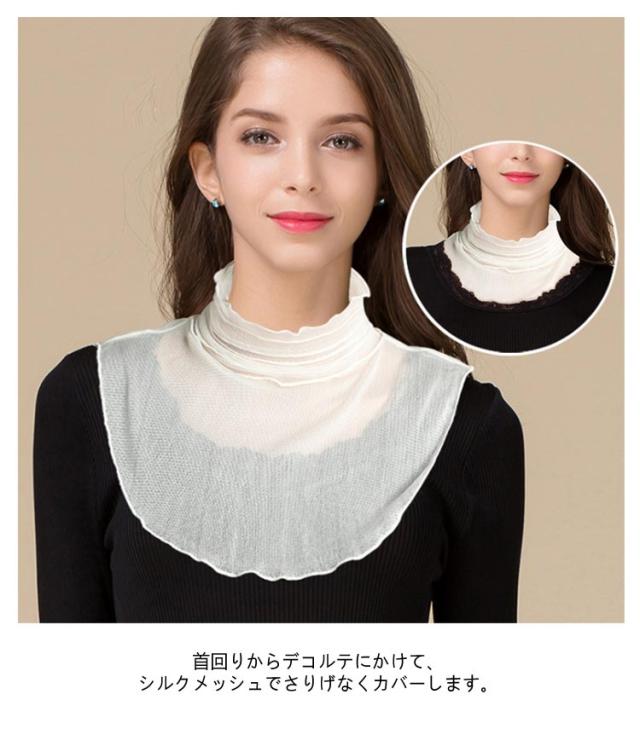 シルク ネックカバー メッシュ メロー レディース 付け襟 UV対策 春夏用 スカーフ つけ襟 ハイネック 紫外線対策 グッズ 首 日焼け対策 UVカット 首元 カバー タートルネック シアー シースルー 透け感 冷房対策 しわ隠し 絹 母の日