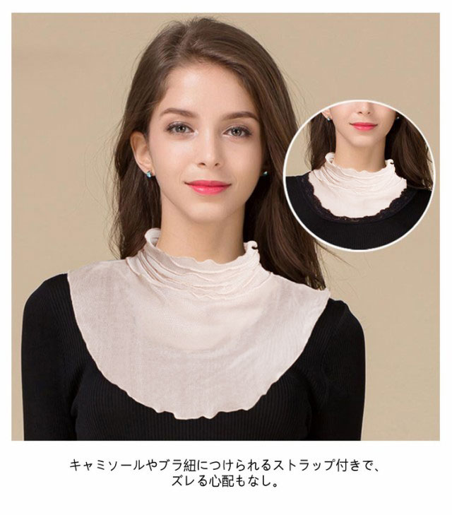 | 【シルク・ネックカバー】【紫外線 冷房対策】【5colors】 シルク100%の柔らかな肌触り♪ 簡単にレイヤードスタイルが完成するメッシュメローネックカバー。 首元の冷えやUV対策にも! 襟ぐりが大きく開いたトップスに着用すれば、胸元を気にすることなく洋服を楽しめます。 首回りからデコルテにかけて、シルクメッシュでさりげなくカバーします。 キャミソールやブラ紐につけられるストラップ付きで、ズレる心配もなし。 小さく折りたためるのでバッグに入れて持ち運びにも。 プレゼントやギフトにも最適♪ | |
