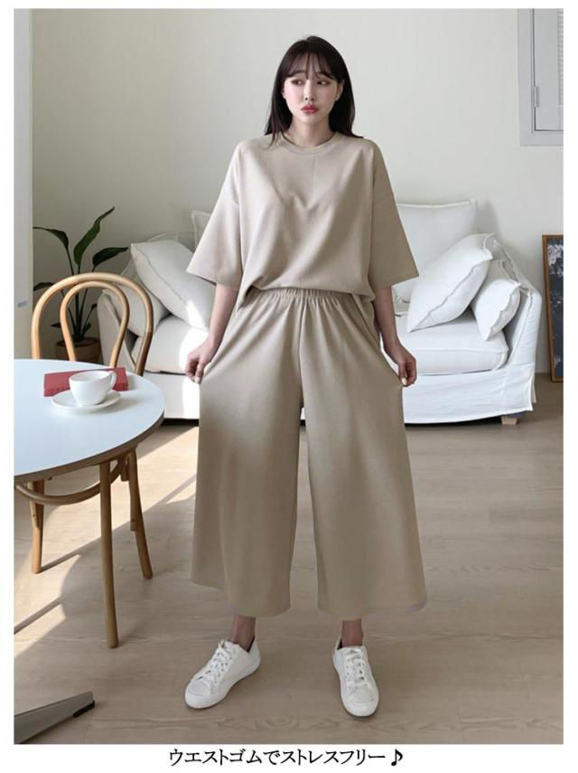| ルームウェアにもお出掛け、スポーツにも様々な場面で活躍する半袖tシャツと七分丈パンツのセットアップです。 ウエストゴムでストレスフリー♪ 大人カジュアルな上下セットは普段使いにも、買い物、散歩、ウォーキング、ジョギング、ルームウエアや部屋着に。急な外出にも活躍します。 | |