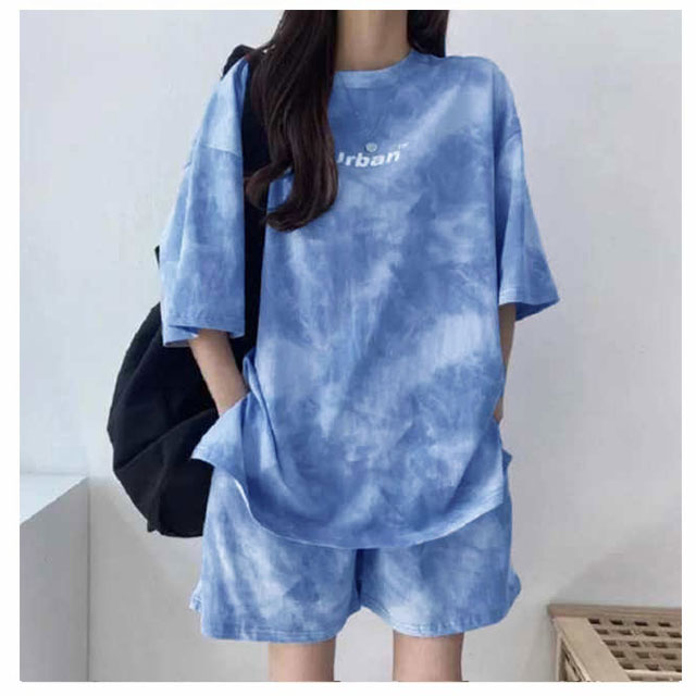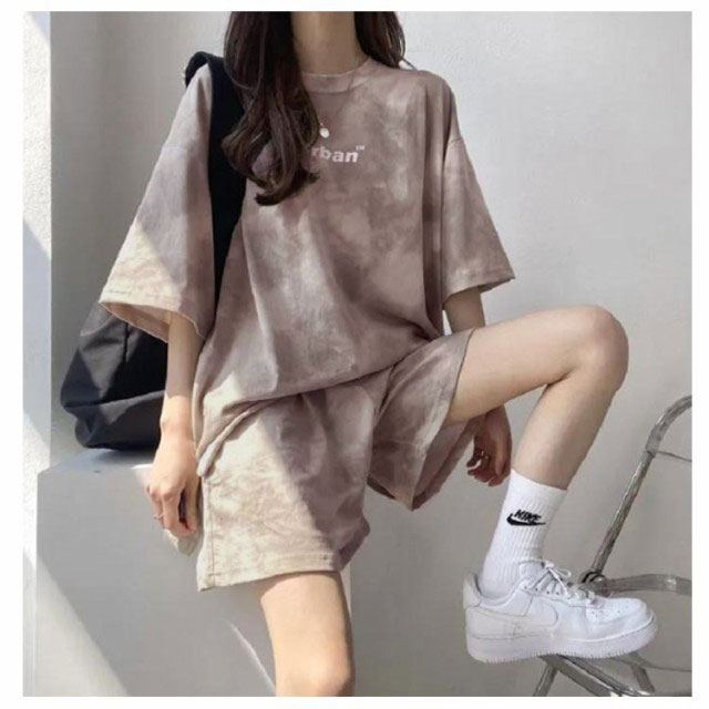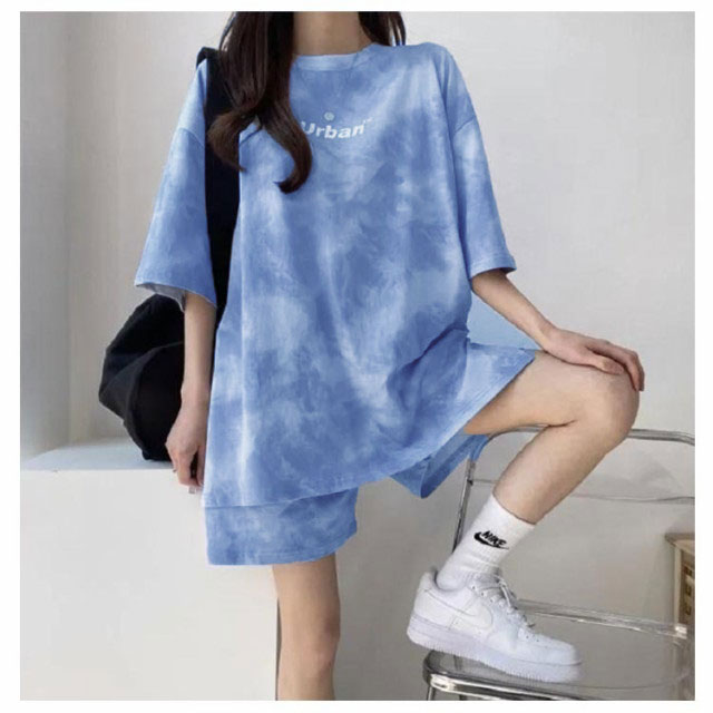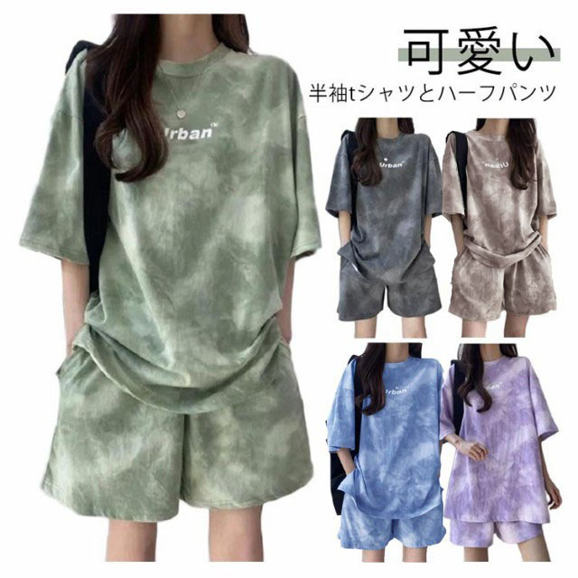 半袖 セットアップ レディース スウェット 上下セット Tシャツ ハーフパンツ 夏 ジャージ プリント tシャツ ショートパンツ 2点セット 薄手 ルームウェア 部屋着 染め ゆったり 大きいサイズ スポーツウェア 運動着 韓国ファッション カジュアル M-4XL