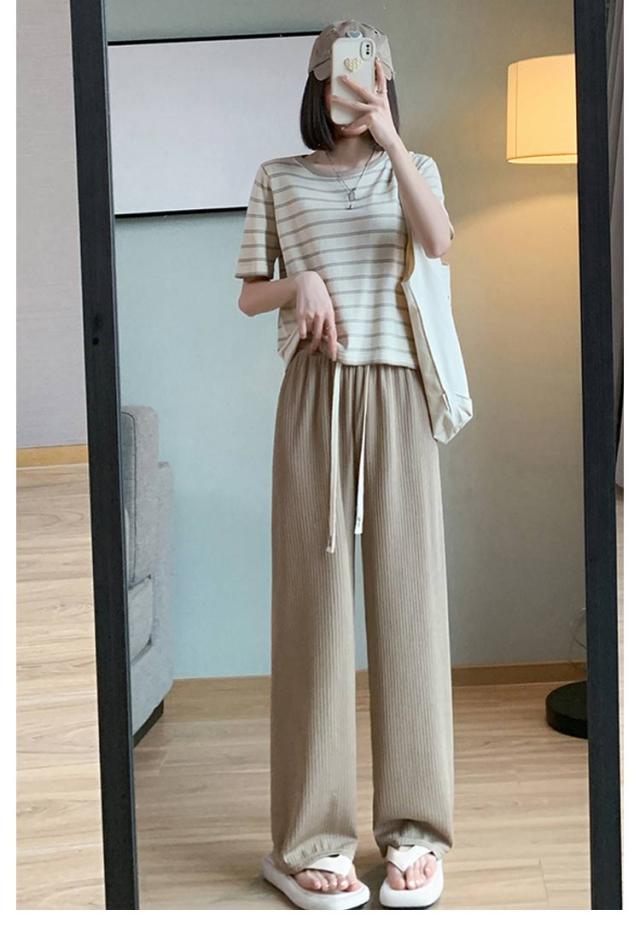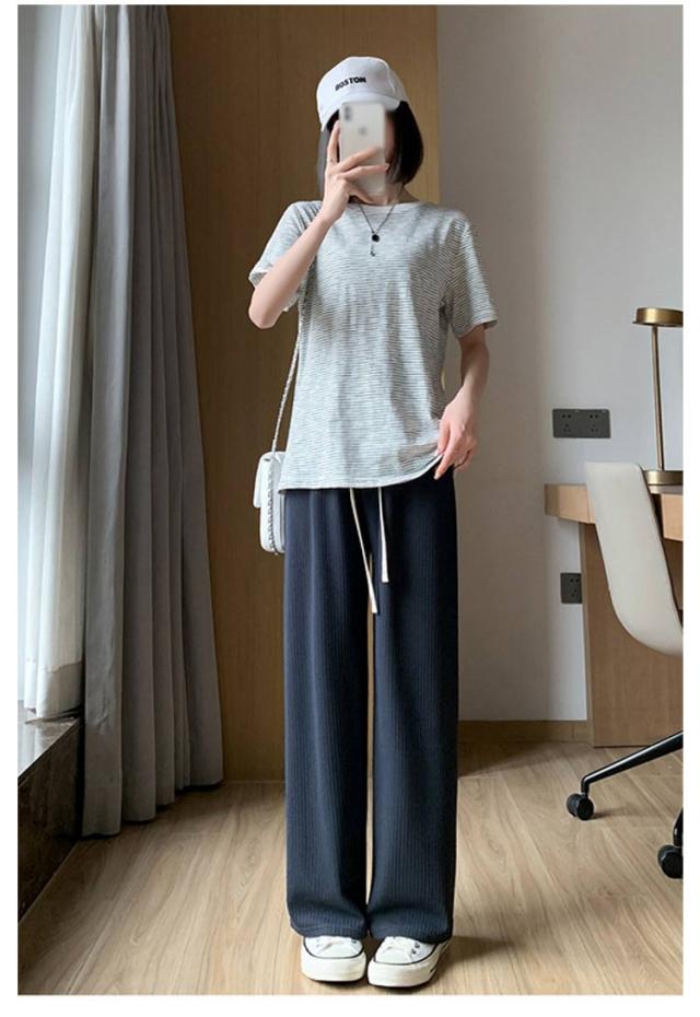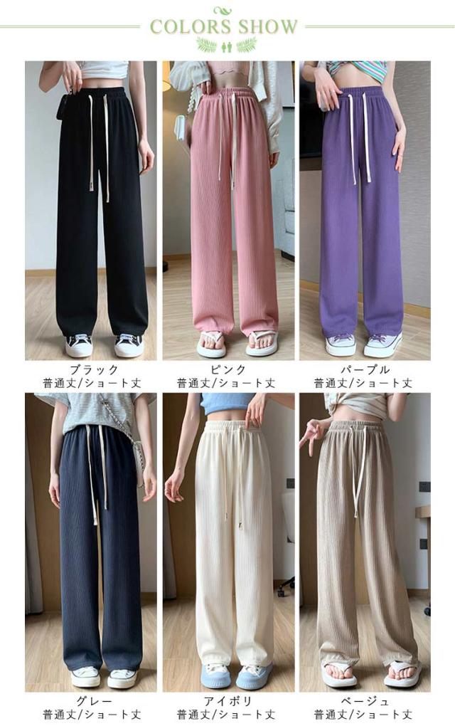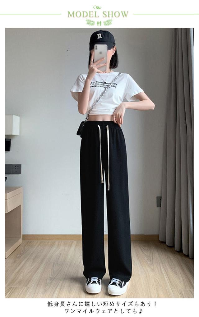 | ウエストゴム入りセンタープレス。 伸縮性のあるリブ生地。 選べる着丈。 低身長さんに嬉しい短めサイズもあり!ワンマイルウェアとしても♪ | |