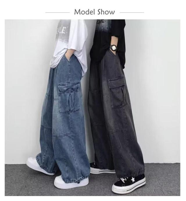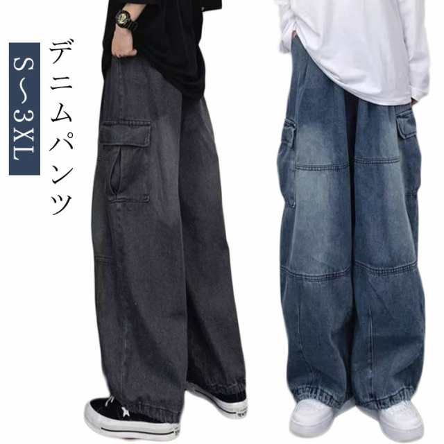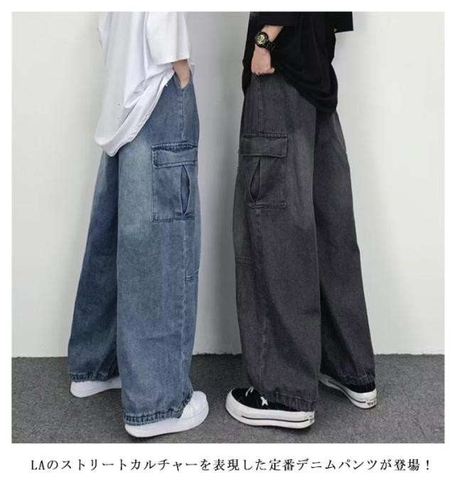 デニム B系 メンズ ヒップホップ ビッグシルエット ルーズ 極太 HIPHOP カーゴパンツ ストリート系 ジーンズ 大きいサイズ パンツ ゆったり デニムパンツ ボトムス ワイドパンツ 秋 春服 ユニセックス メンズファッション 大きい