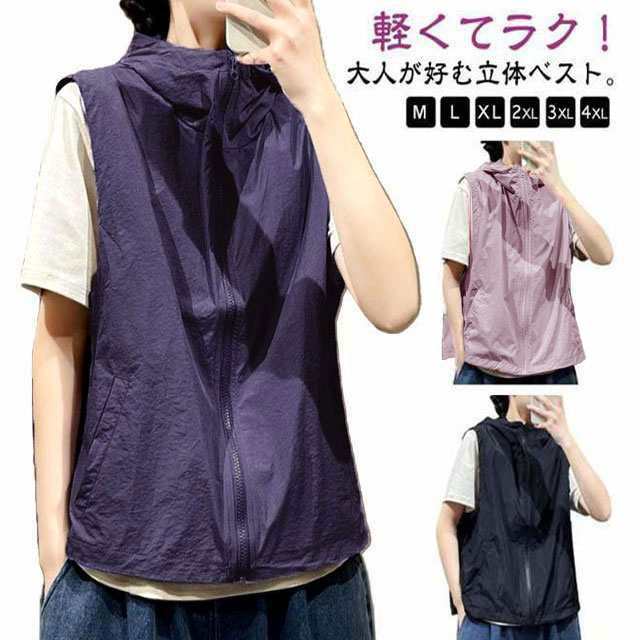 ベスト レディース スポーツベスト メッシュベスト 夏 熱中対策 涼感 アウトドアベスト ファスナー 裏メッシュ フード付き ジップベスト スポーツ アウトドア レジャー 軽量 通気 速乾 お釣り 撮影 山歩き 多機能 お釣り 登山服 送料無料