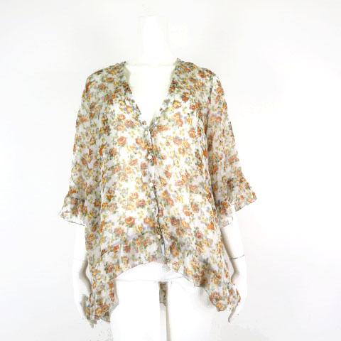 【中古】アズールバイマウジー AZUL by moussy チュニック ブラウス 花柄 シアー 7分袖 S ベージュ グレー オレンジ