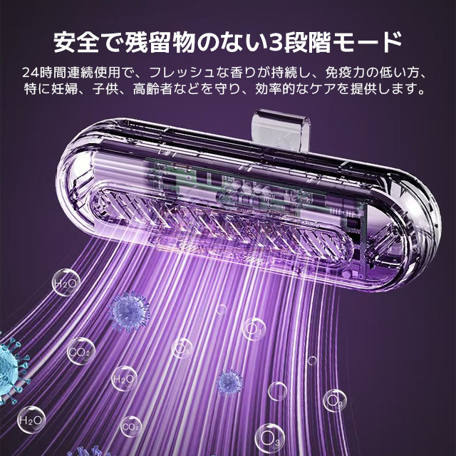 | 【消耗品ないで長持ち】 | ◆従来の消臭炭や重曹と比べて、弊社のUSB充電式消臭器は追加の消耗品が不要で、より環境に優しいです。1200mAhのバッテリーを内蔵しており、2時間の充電で標準動作モードで28日間動作でき、繰り返し使用でき、寿命は最大10年です。消費電力は極めて小さく抑えた省エネ設計なうえ、長期間にわたって除臭効果を維持します。頻繁な交換や追加の必要がありません。 |