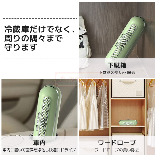 | 【コンパクト&幅広い場に使用】 | ◆小型で美しい外観デザインがあって、冷蔵庫内の環境に調和します。スペースを取らず、冷蔵庫の正常な使用に影響を与えません。静音設計、稼働中は音について心配する必要はありません。 コンパクトだから、下駄箱・食器棚・ワードローブ・車スなどのニオイが気になる小さい密閉空間にどこでも置けます。 |