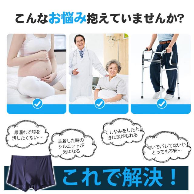 尿漏れ ちょい漏れ 軽失禁 失禁パンツ ボクサーパンツ 男性用 紳士 メンズ シニア 高齢者 中年 骨盤底筋 尿漏れ パンツ 吸水 パッド バレない 前開き ビジネス 会社 営業 商談 新幹線 電車 映画 舞台 ギフト