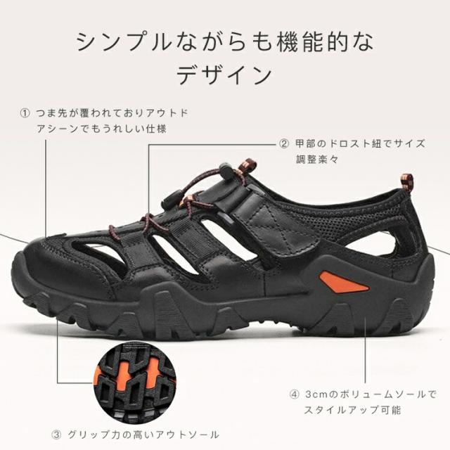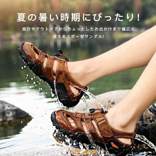 【本革 つま先保護 歩きやすい】サンダル メンズ おしゃれ レザー スポーツ 夏用 スポーツさんだる アウトドアサンダル 大きいサイズ 涼しい 安い おしゃれ 革 おすすめ 防滑 速乾 通気性 耐久性抜群 ビーチサンダル カジュアル 紳士用 新作 2way つま先保護 送料無料