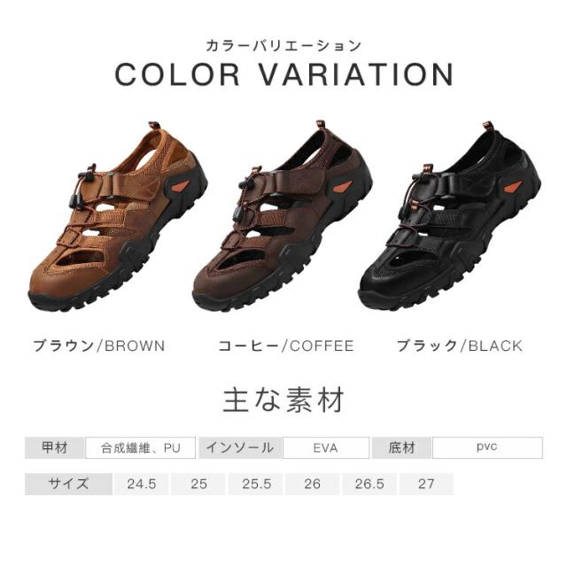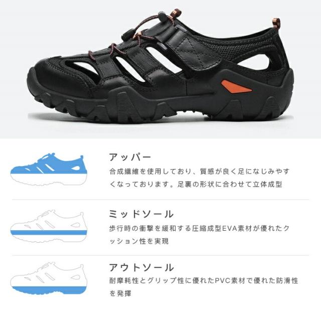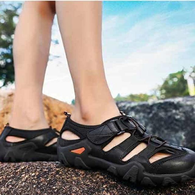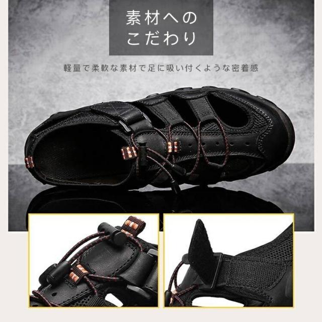 - しっかりしていて高級感があります。つま先も保護されていて安心。夏のアウトドアにもぴったりで、長時間歩いても疲れにくいです。
