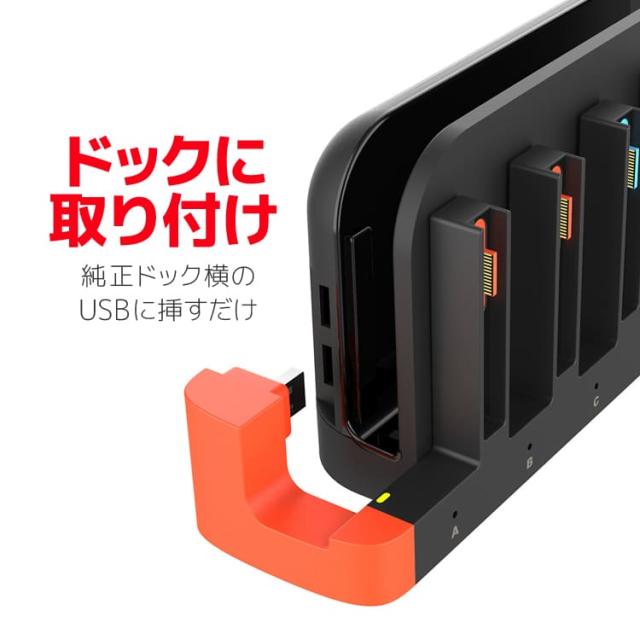 任天堂Switch2のドックに取り付けて、本体と同時にコントローラー4台を充電できるJoyCon充電スタンドです。