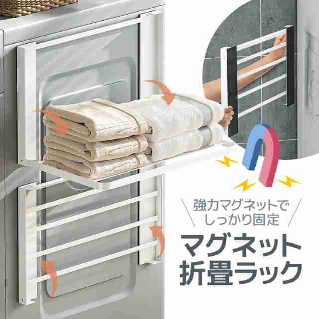 マグネット折りたたみラック 取付簡単 穴あけ不要/ネジ止め不要 タオル掛け 隙間収納 タオル置き 折り畳みタオルラック DBS484