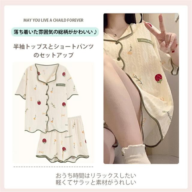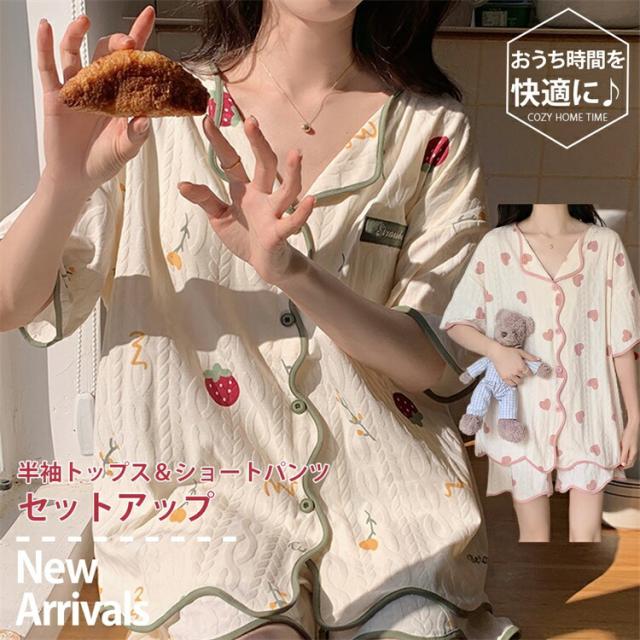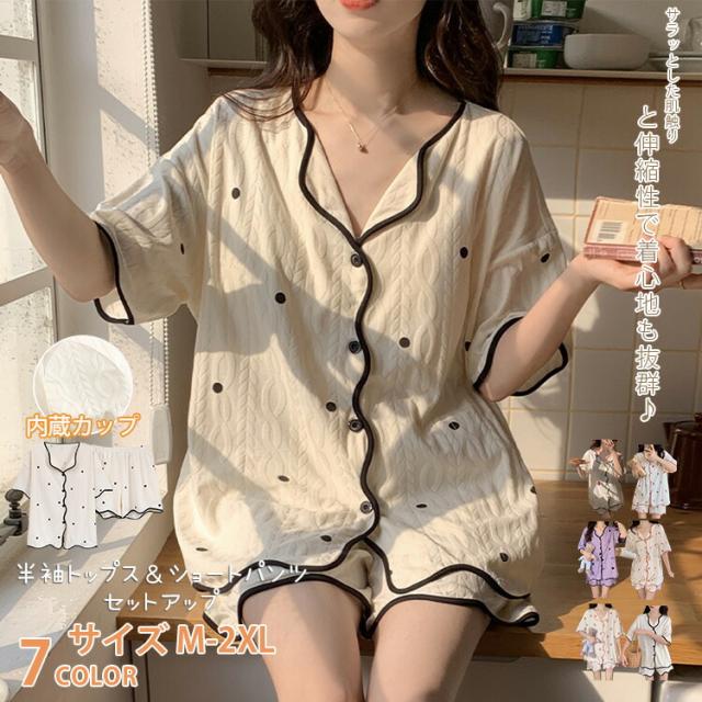【内蔵カップ 綿100% 薄手】パジャマ 半袖 レディース セットアップ ルームウェア 上下セット ズボン 部屋着 寝巻き 着心地 花柄 春 夏 半ズボン 春 夏 夏用 かわいい おしゃれ 涼しい 薄地 女性 可愛い ギフト ハーフパンツ 大人 柔らかい ゆったり ショートパンツ