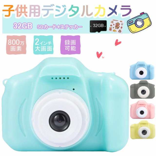 子供用カメラ トイカメラ キッズカメラ シングルカメラ ミニカメラ 800w画素 32GB SDカード付き アニメステッカー 撮影 ビデオ 可愛い おもちゃ プレゼント