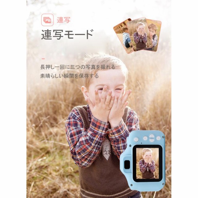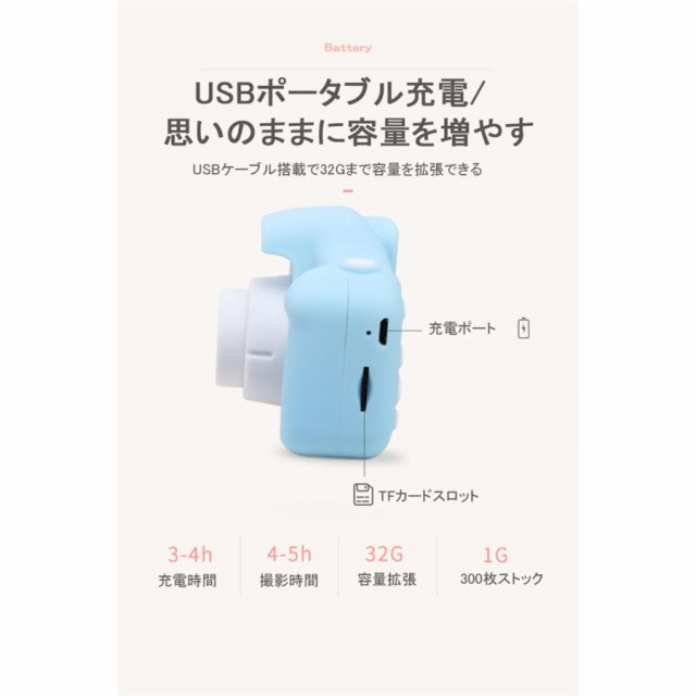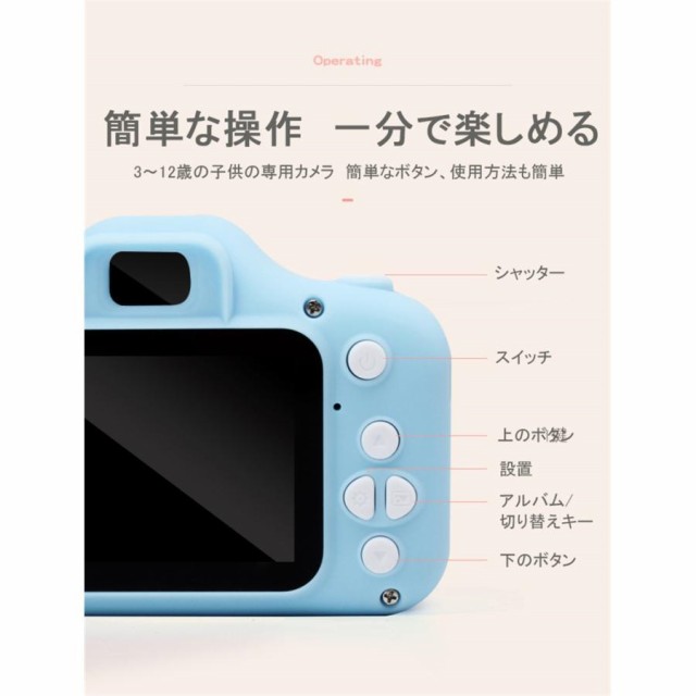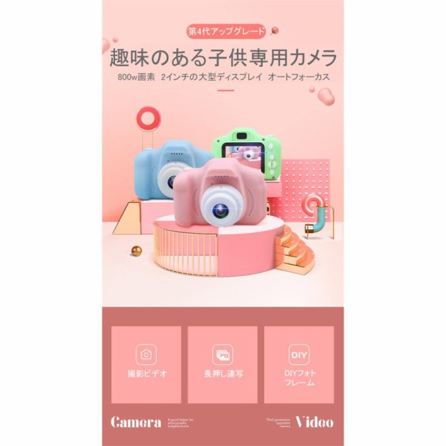 商品名:子供用デジタルシングルカメラ画素数:800万ディスプレイ:2.0インチ機能:撮影/録画/タイマー/DIYフレームサイズ:88mm*48mm*61mmカラー:グリーン、オレンジ、ピンク、パーブル、ライトブルー、ダークブルー充電方法:USB(400mAhバッテリー内蔵)充電時間:3-4h撮影時間:4-5h特徴【高画素トイカメラ&2.0インチIPS大画面】【簡単操作&32GB SDカード付き】【持ち運び便利&USB充電】【オートフォーカス】【自撮りタイマー】【DIYフレーム】パッケージ内容首掛けストラップx1USBケーブルx1カメラ本体x1ステッカーx1