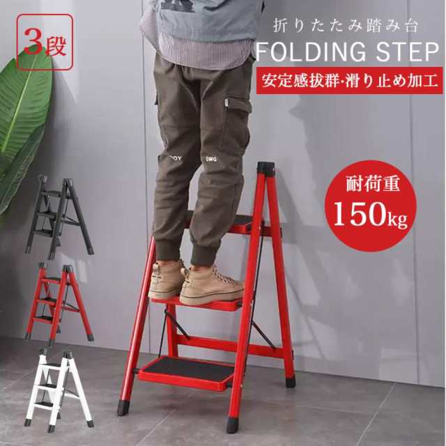 踏み台 脚立 折りたたみ おしゃれ 3段 ステップ台 ステップラダー ステップスツール 棚 大掃除 洗車台 はしご 梯子 滑り止め 持ち手 手すり 送料無料
