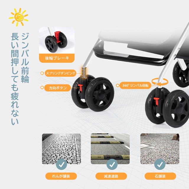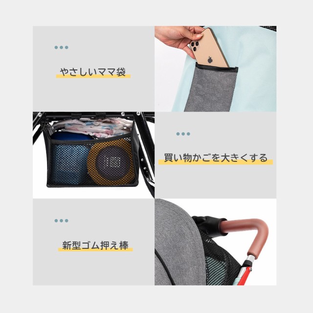 【おでかけにうれしい】狭い場所でも使いやすいサイズ、対面も背面もOKのハンドル切り替え、カンタン調節リクライニング、ビッグバスケット。