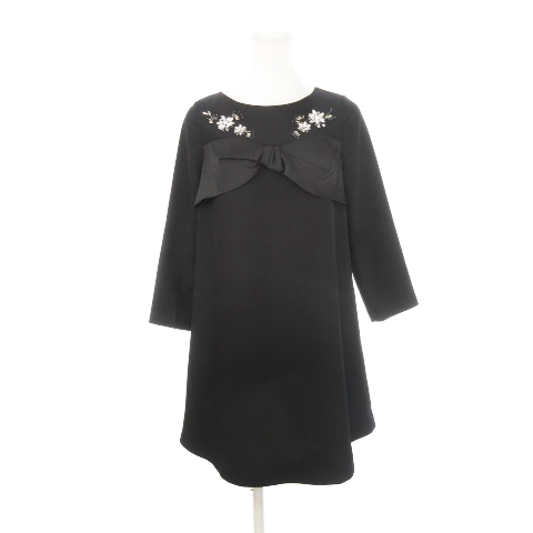 【中古】チェスティ Chesty ミニワンピース 長袖 ビジュー フラワー ラインストーン リボン 0 S 黒 ブラック /AH22