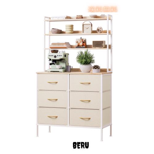 SINNONAKA 3段木製ディスプレイラック付きハイチェスト タンス 布製引き出し6杯 ロボット掃除機OK 衣類収納 オープンシェルフ 多目的収納