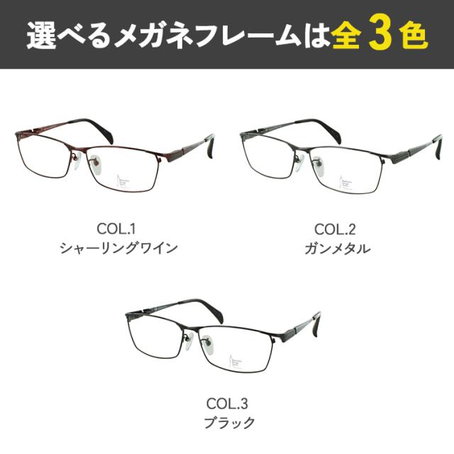 | <フレームカラー> COL.1 シャーリングワイン COL.2 ガンメタル COL.3 ブラック | <素材> フレーム材質:チタン テンプル材質:チタン |