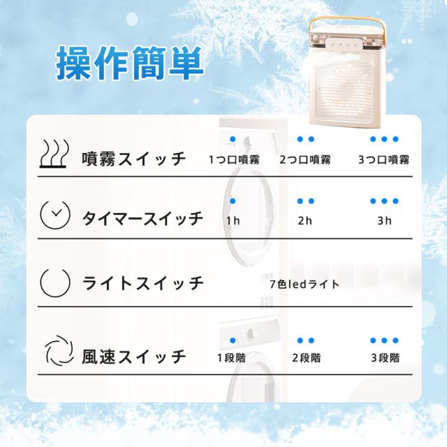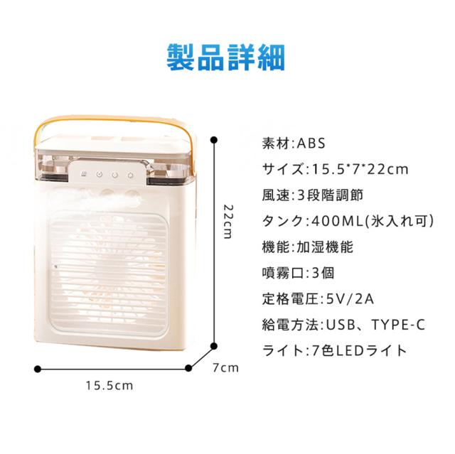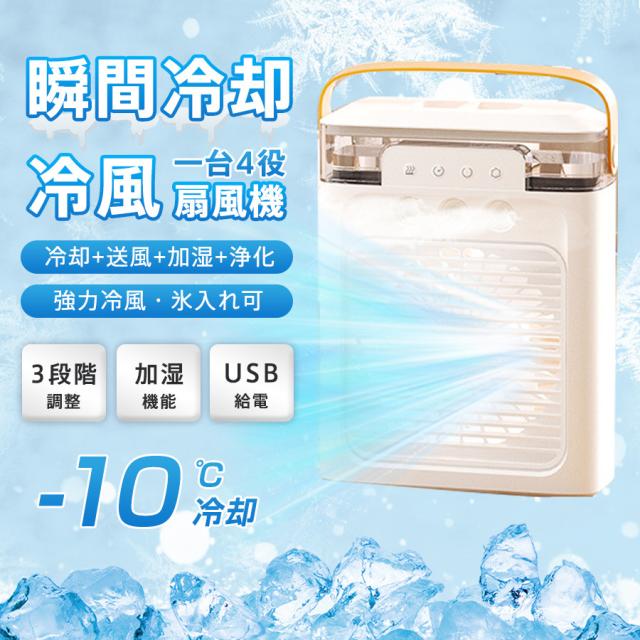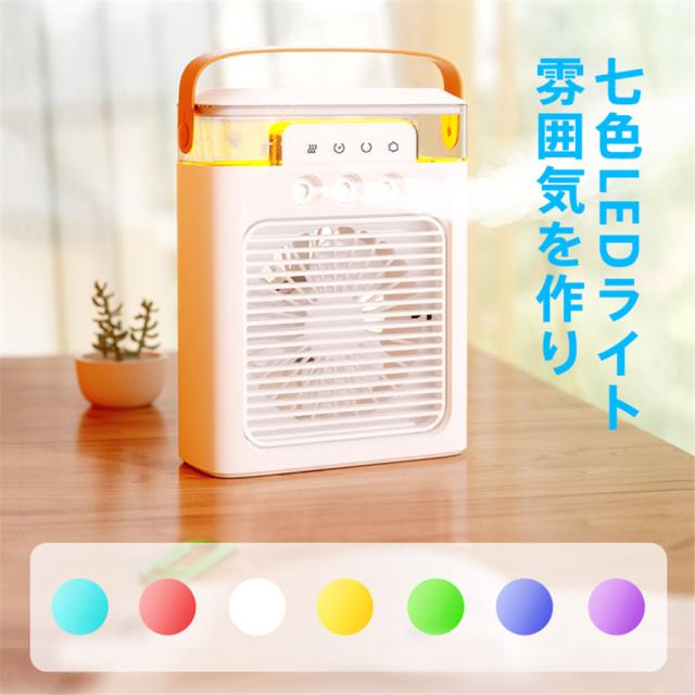 卓上扇風機 卓上冷風機 送風 冷却 加湿 スプレー 空気清浄 1台4役 空気循環 USB給電 静音 広角送風 扇風機 節電対策 噴霧 1台多役 風量3段階 ミスト ミニクーラー 上から給水 七色LEDライト 軽音 コンパクト 車内 自宅 寝室 キャンプ用 暑さ対策 涼しい アロマ対応 車載 車中泊 キッチン 子供部屋 母の日 父の日 誕生日 プレゼント ギフト