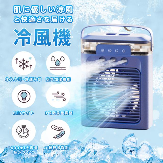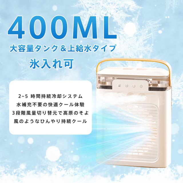 冷風機 冷風扇 小型 卓上クーラー 強力送風 3段階調整 冷却 タイマー機能 加湿 400ML大容量 氷入れ可 サーキュレーター