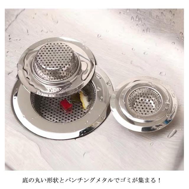 | 排水口にモノを落とすのを防ぎつつ、簡単に掃除できることができます。 ステンレス鋼を使用しているので、衛生的で錆びにくく丈夫。 底の丸い形状とパンチングメタルでゴミが集まる! 髪の毛やゴミが絡まず、するっと取れるのでとっても便利です。 選べる4サイズ展開、ほとんどの流し台メーカーの排水口にぴったり。 台所のシンクだけでなくユニットバスにも使えます。 | |