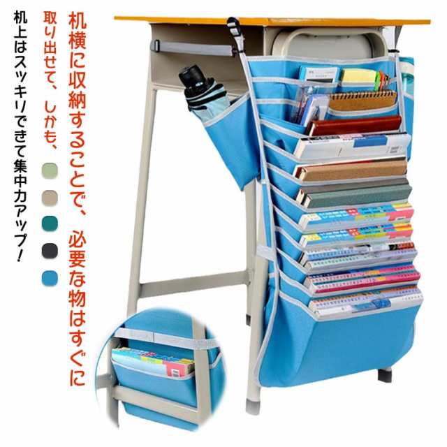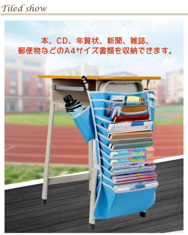 机周り デスクサイド収納 小物入れ ポケット 大容量 小物 整理 ブック 収納 吊り下げ 書類入れ 新聞紙 手紙 入れ バッグ デスクサイドポケット 学生 高校生 教室 防塵 防水 本 中学校 テーブル サイド ベルト