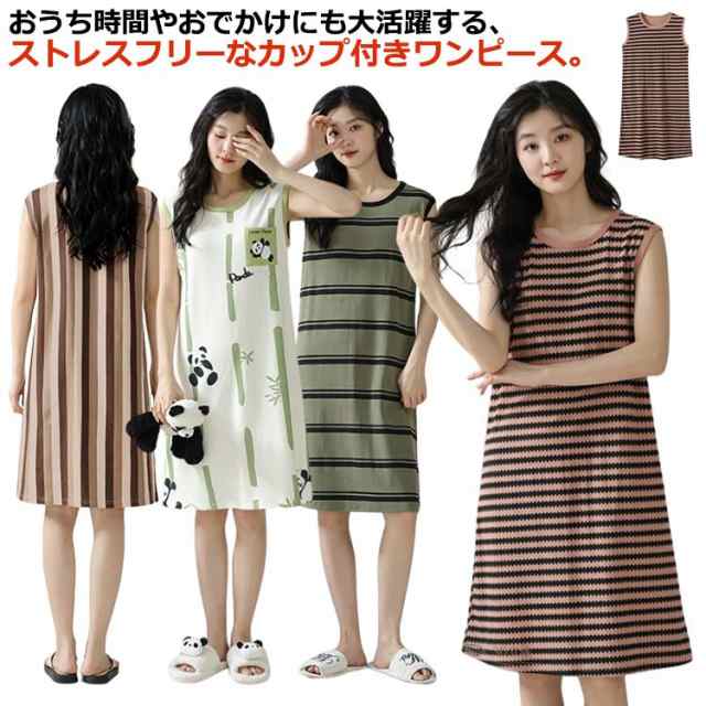 カップ付きワンピース ワンピース タンクワンピース ひざ丈 パジャマ キャミワンピ 綿 ルームワンピース タンクワンピース ボーダー レディース ポケット付き ルームウェア コットン ロングパンツワンピース 部屋着 20代 30代 40代