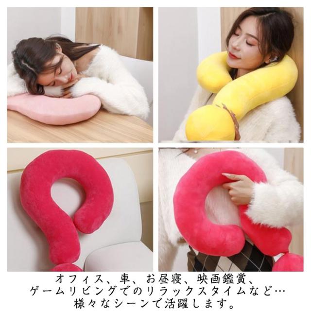 ネックピロー 疑問符の形 首枕 抱き枕 おもしろ 昼寝 うつ伏せ 飛行機 車 携帯用枕 U型まくら 旅行 トラベル 首クッション オフィス パソコン テレビ おしゃれ 可愛い インテリア プレゼント ギフト 全7色