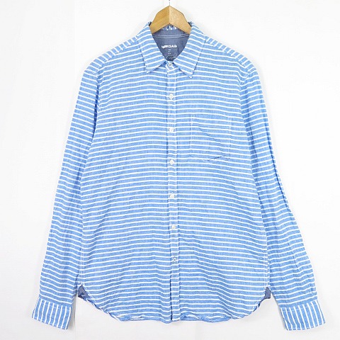 【中古】ガス GAS リネンシャツ 長袖 S ボーダー ブルー/オフホワイト 2sa6631 メンズ