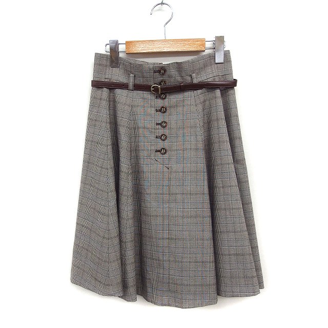 【中古】エフデ ef-de グレンチェック フレアスカート ひざ丈 ベルト 9 グレー 灰 /FT5 レディース