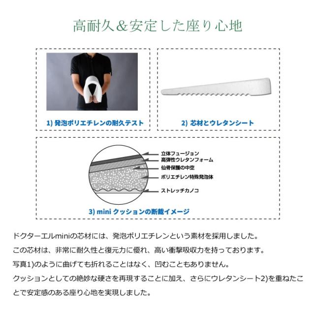ドクターエル mini ミニ クッション 日本製 腰 サポート 骨盤 補正 座布団 負担軽減 デスクワーク 姿勢 サポート 食事 勉強 ゲーム 発泡ポリエチレン ウレタン