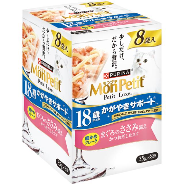 モンプチ プチリュクス フレーク 18歳以上用 まぐろのささみ添え 35g×8袋入 280g [猫 シニア トッピング ご褒美 キャットフード ネスレ日本]