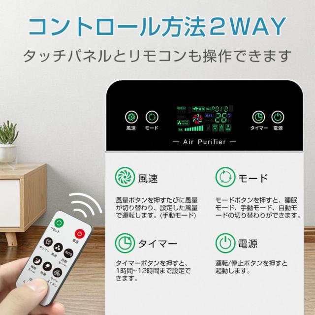 花粉対策! 空気清浄機 花粉 35畳対応 除菌 リモコン付 脱臭機 ホコリ タイミング機能 PM2.5 コンパクト 小型 家庭用 集塵 脱臭 省エネ