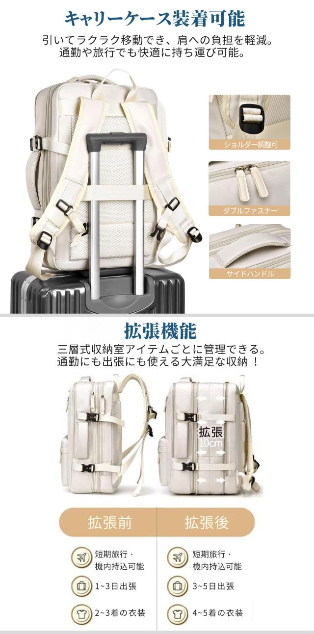 ビジネスリュック メンズ 大容量 拡張可能 撥水 軽量 旅行 通勤用 パソコン対応 多機能 リュックサック レディース兼用