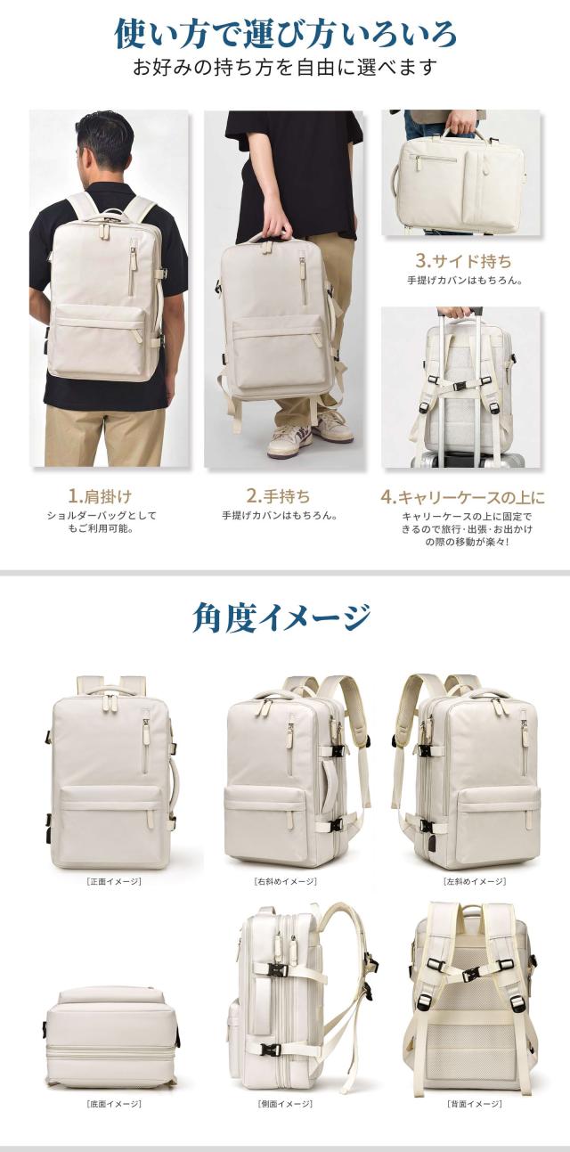 - パソコン2台持ちなので、いつも荷物が多く困っていましたが、スタイリッシュで拡張できて、ポケットもたくさんあって使いやすく、良い商品でした!! 生地もしっかりしていて背中側はメッシュ&クッション性もあり快適。自立します。ベルトで長さや厚みの調整もでき、前側でも止められ、使いやすいです。 取手が上にも横にもあり顧客訪問時なども助かります。安価でいい買い物が出来ました。ありがとうございましたーー