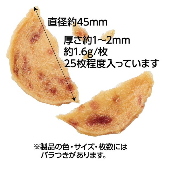 食品添加物完全無添加、鶏ササミと砂ぎものみを使用しました。パリッと食感でそのままでも、好みのサイズに割っても食べやすい極薄チップス。