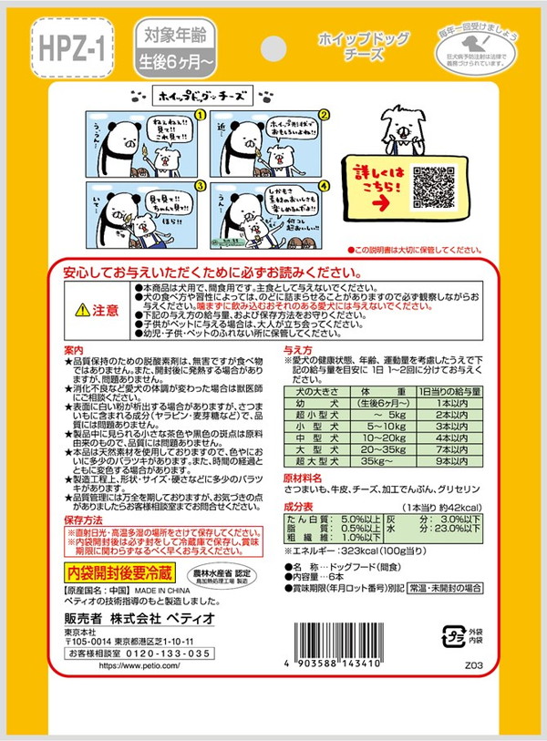 さつまいも、牛皮、チーズ、加工でんぷん、グリセリン