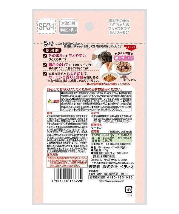 【10個セット】 ペティオ 素材そのまま ねこちゃんの 完全無添加 フリーズドライ 蒸しサーモン 10g【送料無料】