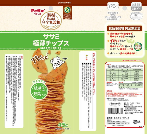 ペティオ 素材そのまま 完全無添加 ササミ 野菜入り パリッと 極薄チップス 45g