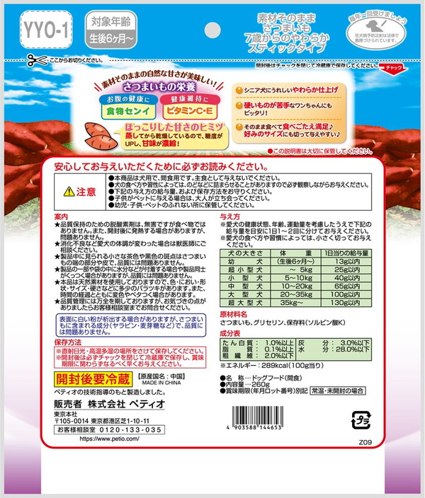 ペティオ 素材そのまま さつまいも 7歳からのやわらかスティックタイプ 260g
