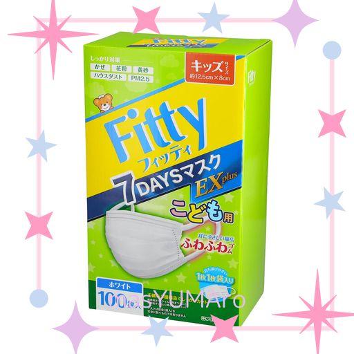 [フィッティ] FITTY 7DAYS マスク EXプラス 100枚 (キッズサイズ/不織布 / 50枚×2箱) 個包装 不織布マスク (耳が痛くりにくい/キッズ こども) 使い捨て