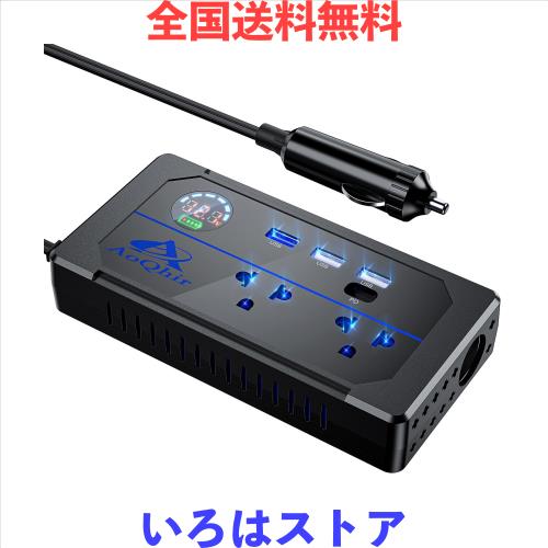 カーインバーター シガーソケット コンセント 200W DC12VをAC100Vに変換 USB 3ポート QC3.0USB急速充電 AC100V電源2口 TYP-Cサポート 修