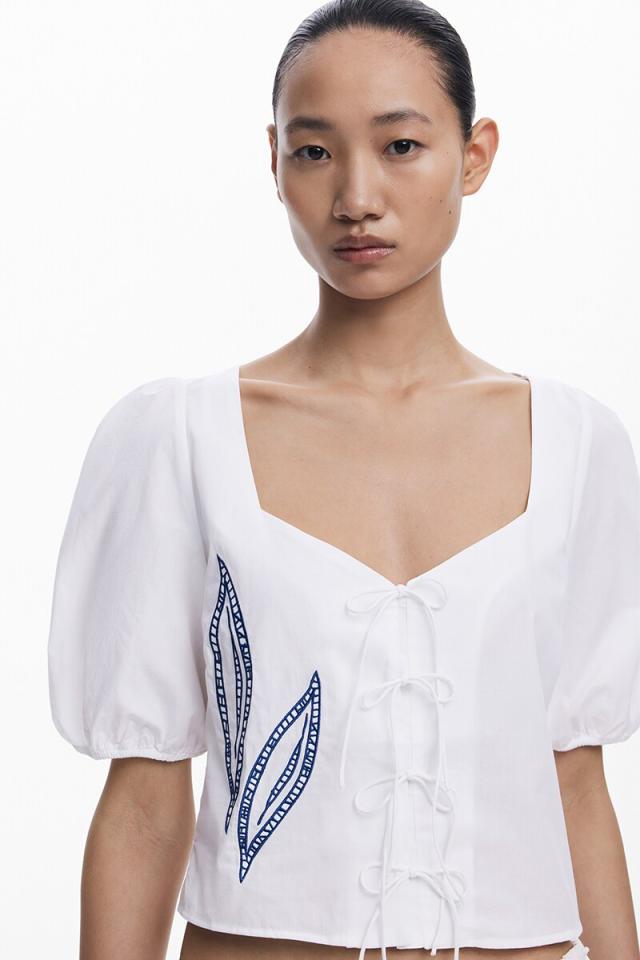 デシグアル(Desigual)/【5サイズ展開/XS/XL】刺繍入りバルドーブラウス