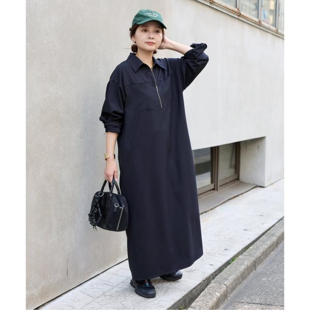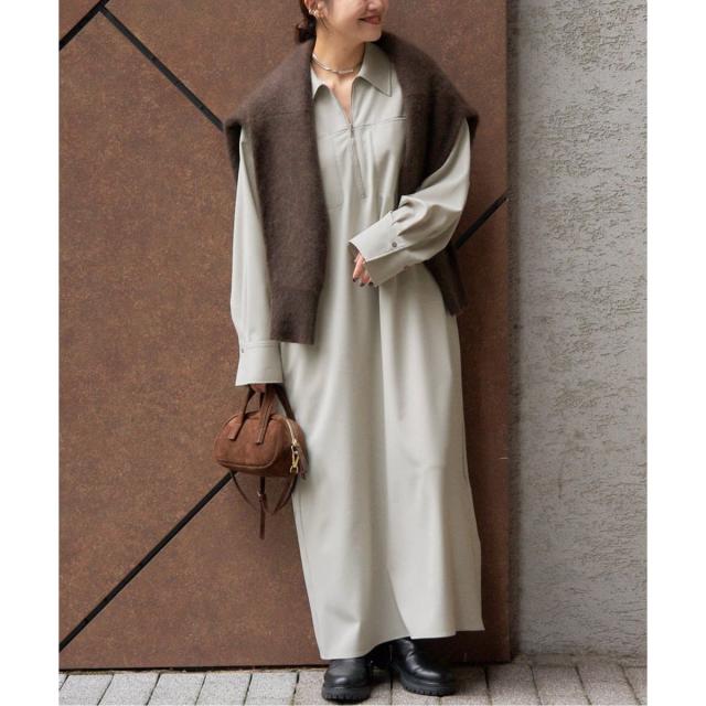 秋らしさを感じるハーフジップデザインワンピース。